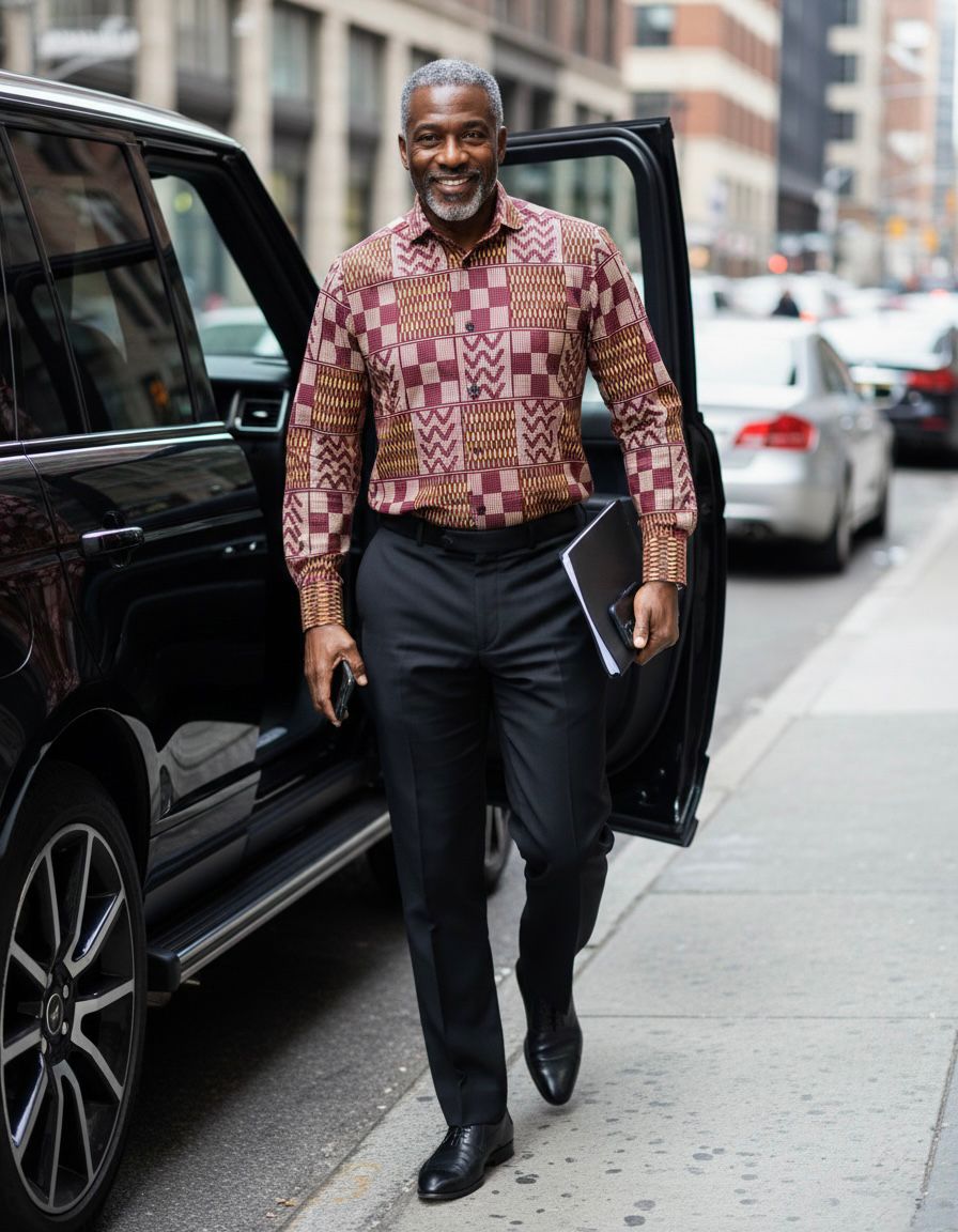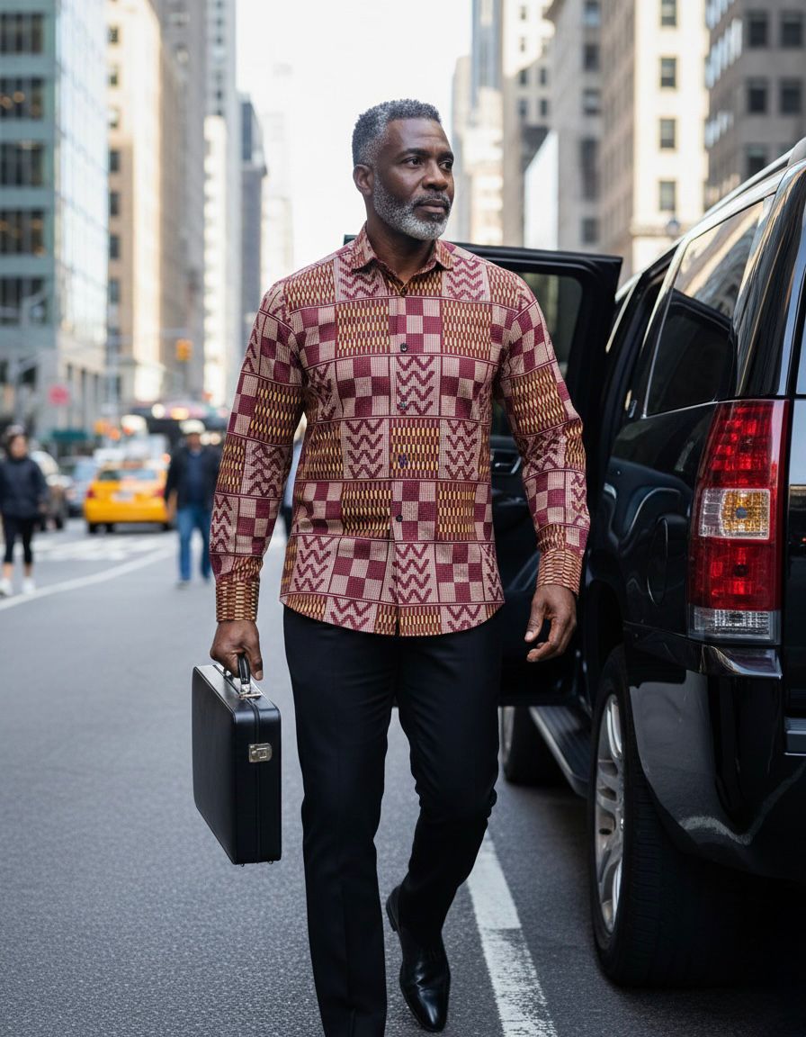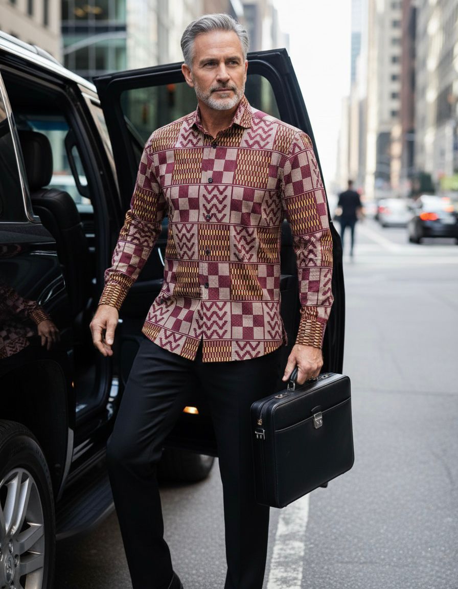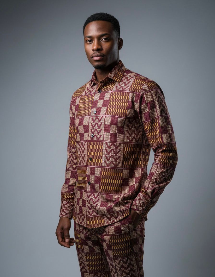 - Long-sleeve Ankara shirt men